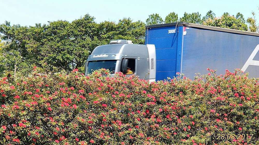 Quem trafega pela BR-101 no trecho gaúcho, entre as cidades de Torres a Osório, pode se deslumbrar com a paisagem formada pela floração existente nessa época do canteiro central da rodovia federal.