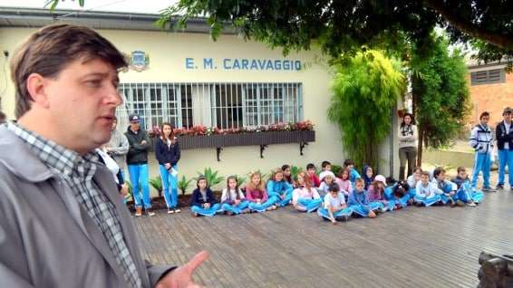 Nesta terça-feira (21), o Chefe do Executivo visitou as unidades escolares acompanhado dos Secretários de Educação, Carmen Malgarise, de Finanças, César Bortoluzzi, e de Cultura, Esporte e Turismo, Giliard Gava. “Esse contato é muito importante. Aproveitamos para ouvir as reivindicações da direção e dos alunos. Algumas coisas simples já autorizamos fazer, e outros vamos em busca de recursos”, explica Gava. Além da Escola Estadual Humberto Hermes Hoffmann, eles passaram na Escola Municipal Caravaggio, Escola Terezinha Pasetto Spillere, e CEI Pequeno Príncipe.