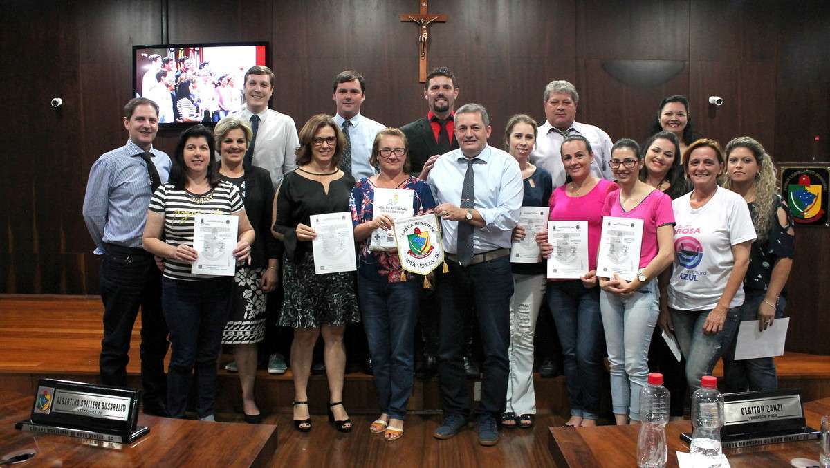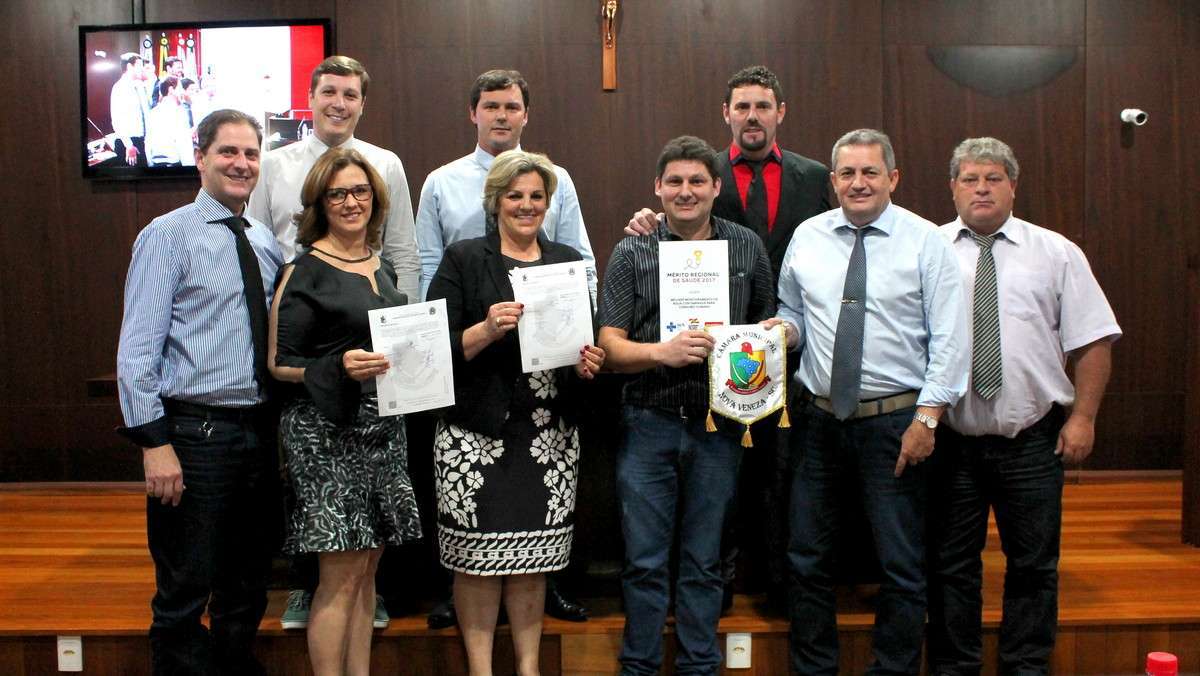 Já a Moção de autoria de Edaltro Luiz Bortolotto ressaltou o Programa de Imunizações, que recebeu o Troféu Mérito Regional da Saúde 2017, promovido pela 20ª Agência de Desenvolvimento Regional ADR, de Criciúma. Estiveram na Câmara para receber as homenagens as profissionais Jane Maria Viola, Gisele Cardoso Vicente, Jaqueline Comin Viola, Carmen Dagostin Romanha, Luiciane Daniel Fernandes, Janete Marangoni Bonotto e Patrícia Sprícigo Locatelli.