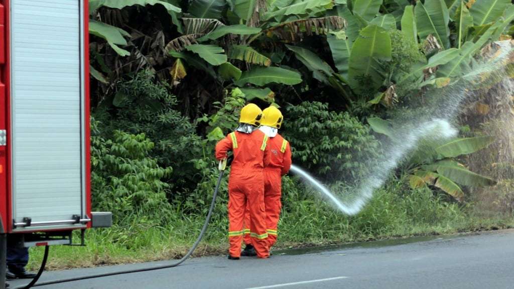 Os bombeiros trabalharam por cerca de 40 minutos para conter o incêndio. A ocorrência foi uma das quatro chamadas de fogo em vegetação recebidas somente hoje pela central de emergência da corporação.