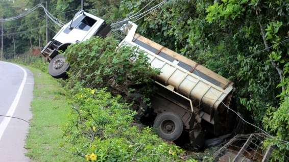 O motorista temendo maiores problemas, pois logo atrás havia outros veículos acabou jogando o caminhão barranco abaixo.