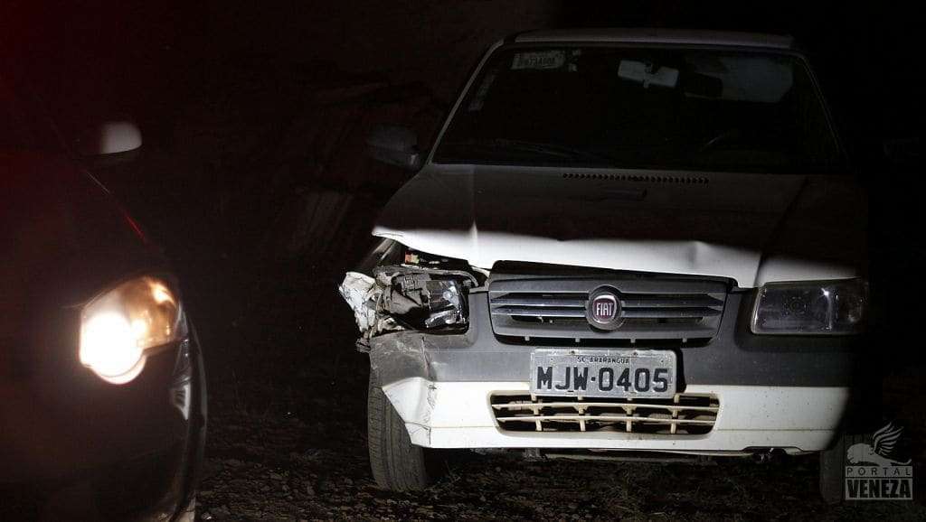 Um Fiat Uno placas de Araranguá estacionado na margem da estrada que dá acesso a “Cachoeira dos Coral”, no bairro Elisa em Nova Veneza, foi atingido por outro veículo por volta das 18 horas desse domingo, 6.