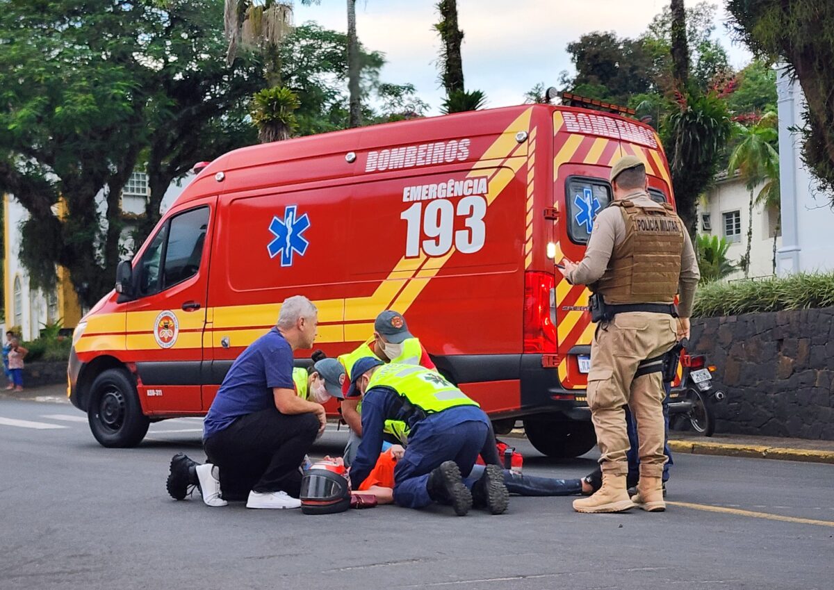 Um acidente de trânsito envolvendo uma motocicleta e um carro foi registrado por volta das 17h20 desta sexta-feira, 10, no Centro de Nova Veneza.