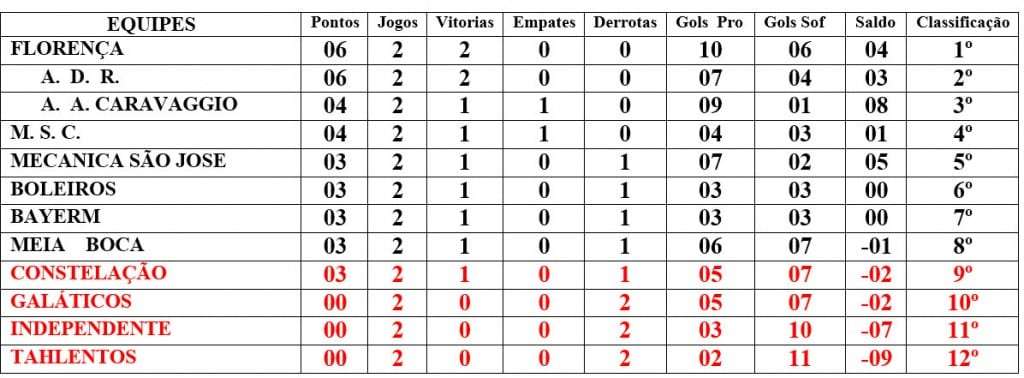 Confira os resultados do Campeonato Arena Caravaggio