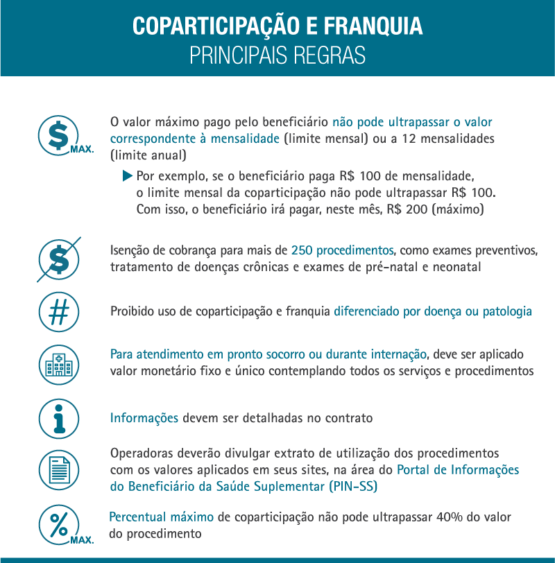 Segundo a ANS a norma protege o consumidor ao estabelecer um percentual máximo a ser cobrado pela operadora para realização de procedimentos; ao determinar limites (mensal e anual) para exposição financeira do consumidor (o máximo que o consumidor pode pagar, no total, por coparticipação e franquia); e ao isentar a incidência de coparticipação e franquia em mais de 250 procedimentos, como exames preventivos e tratamentos de doenças crônicas, entre eles, tratamentos de câncer e hemodiálise. Com a medida, a reguladora supre lacunas existentes na legislação, garantindo maior previsibilidade, clareza e segurança jurídica aos consumidores.