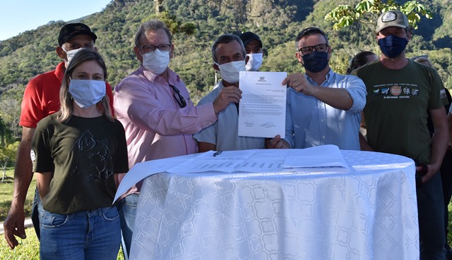 Além de moradores da comunidade, a assinatura da Ordem de Serviço também contou com a presença de representantes do Governo Municipal; do gerente regional do Instituto do Meio Ambiente (IMA) de Santa Catarina, Coronel André Luiz Dias de Mello; dos técnicos do IMA Eduardo Miotello e Isadora Zappelini; do coordenador da Reserva Biológica Estadual do Aguaí, Joel Casagrande, do Delegado Regional de Polícia Civil, Vitor Bianco Júnior; e dos vereadores: Janete Trento, Pipi Maravai e Sargento Valcir.