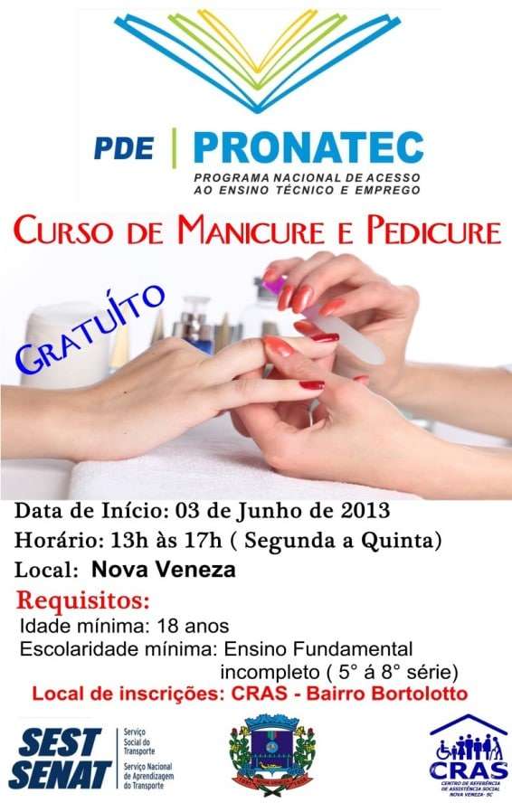 O Centro de Referência da Assistência Social (CRAS) está disponibilizando três cursos profissionalizantes para os neovenezianos. O Programa Nacional de Acesso ao Ensino Técnico e Emprego (Pronatec) foi criado pelo Governo Federal, com o objetivo de ampliar a oferta de cursos de educação profissional e tecnológica.
