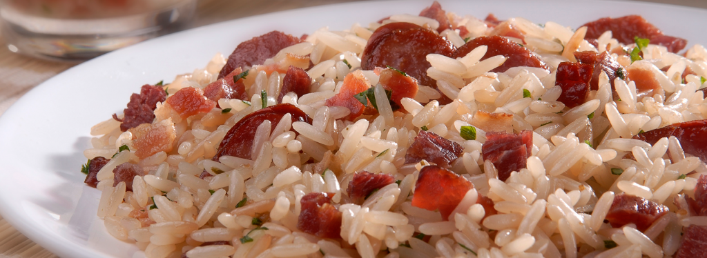 É simples. Refogue bem as carnes, acrescente cebola e alho e refogue mais um pouco. Vá adicionando o caldo aos poucos para não secar/queimar. Se quiser um arroz mais “molhado”, utilize também tomate picado bem maduro e extrato de tomate. Cozinhe por mais 10 minutos. Tempere com sal e pimenta do reino.
