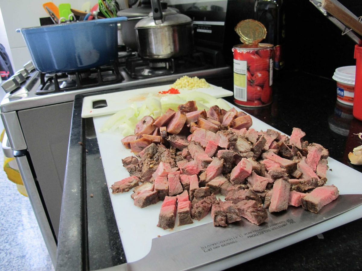 E mais: carne à escabeche (“vaca louca”) com sobras de churrasco.