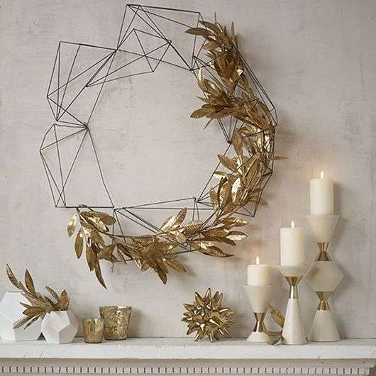 Extremamente estilizada, entrando na tendência dos aramados geométricos e do dourado na decoração essa guirlanda me surpreendeu pela simplicidade e atualidade! De uma olhada nos demais elementos decorativos que a cercam, design com estilo escandinavo, que é a tendência “must” do momento. Simplesmente amei!
