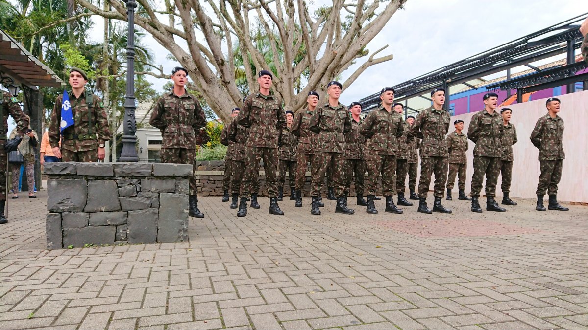 A solenidade foi comandada pelo instrutor chefe do Núcleo de Preparação de Oficiais da Reserva (NPOR), da unidade, major Dárcio Dantas de Oliveira, acompanhado de oficiais, sargentos, alunos do NPOR e pela Banda Severiano.