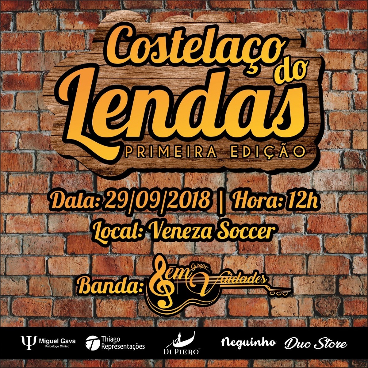 O time da rapaziada mais resenha da Veneza promoverá um costelaço no próximo dia 29, será a primeira edição do Costelaço do Lendas, os ingressos poderão ser adquiridos com os amigos, Fábio De Mattia, Leandro Melo, Renato Gava, Ângelo Gava, Mauricio Ghislandi, Nelsinho Ghislandi e o Max. Não vai perder essa!!!
