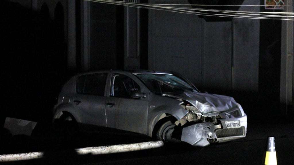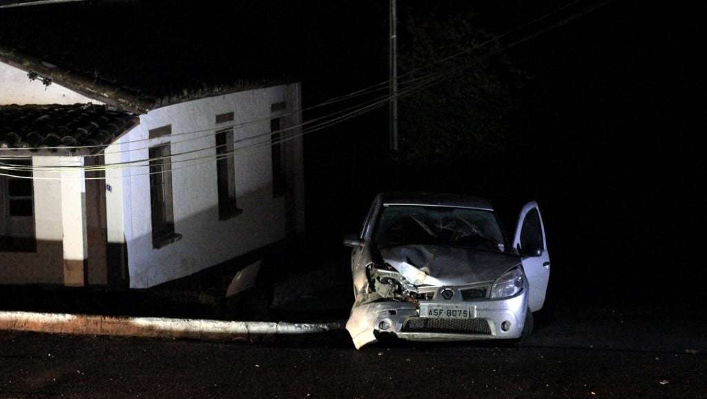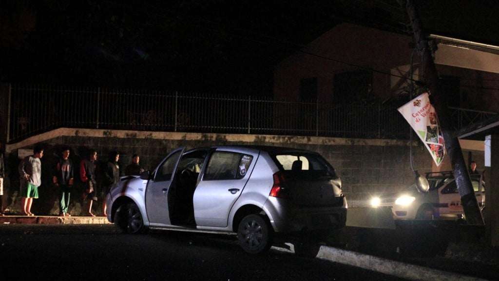 Os militares então continuaram a ronda, e na rua Antônio Remor, próximo a pamonheira (referência), encontraram um Renault Sandero placas de Criciúma, que acabara de colidir em um poste. Após o impacto, o veículo que seguia em direção a Matriz São Marcos, acabou parando na rua Addo Caldas Faraco.