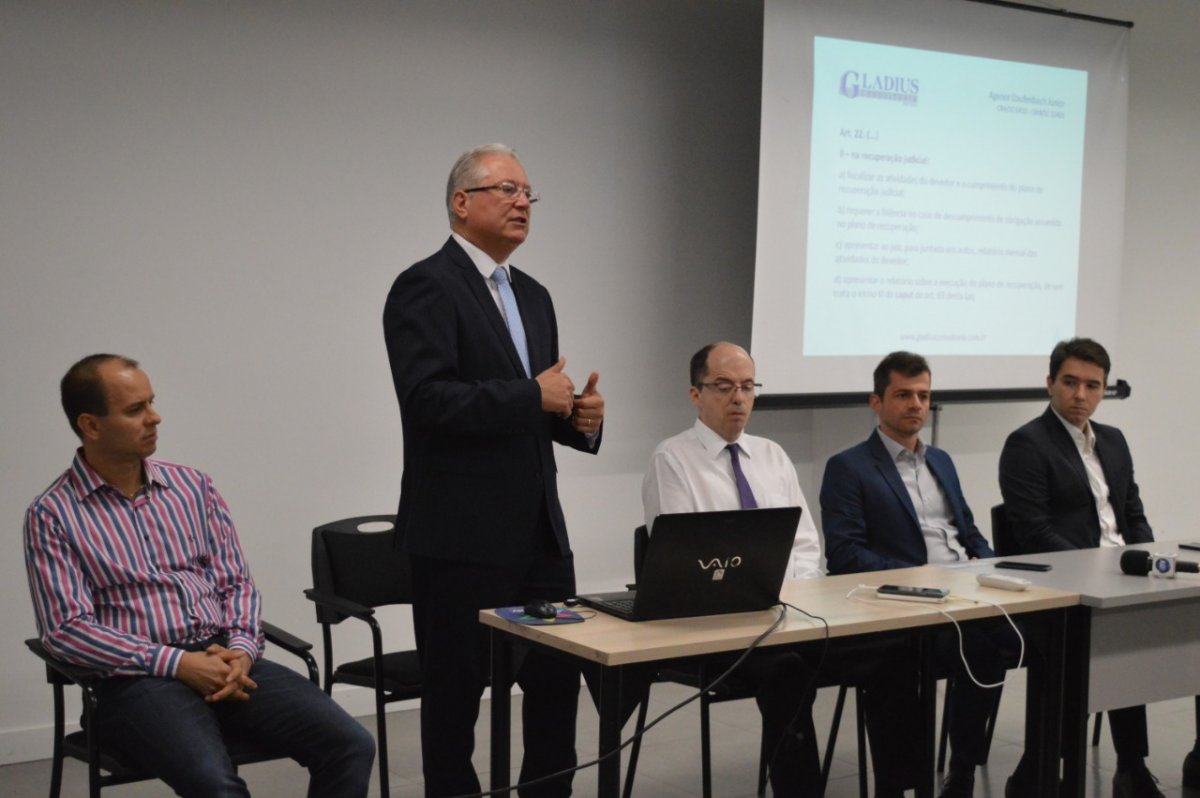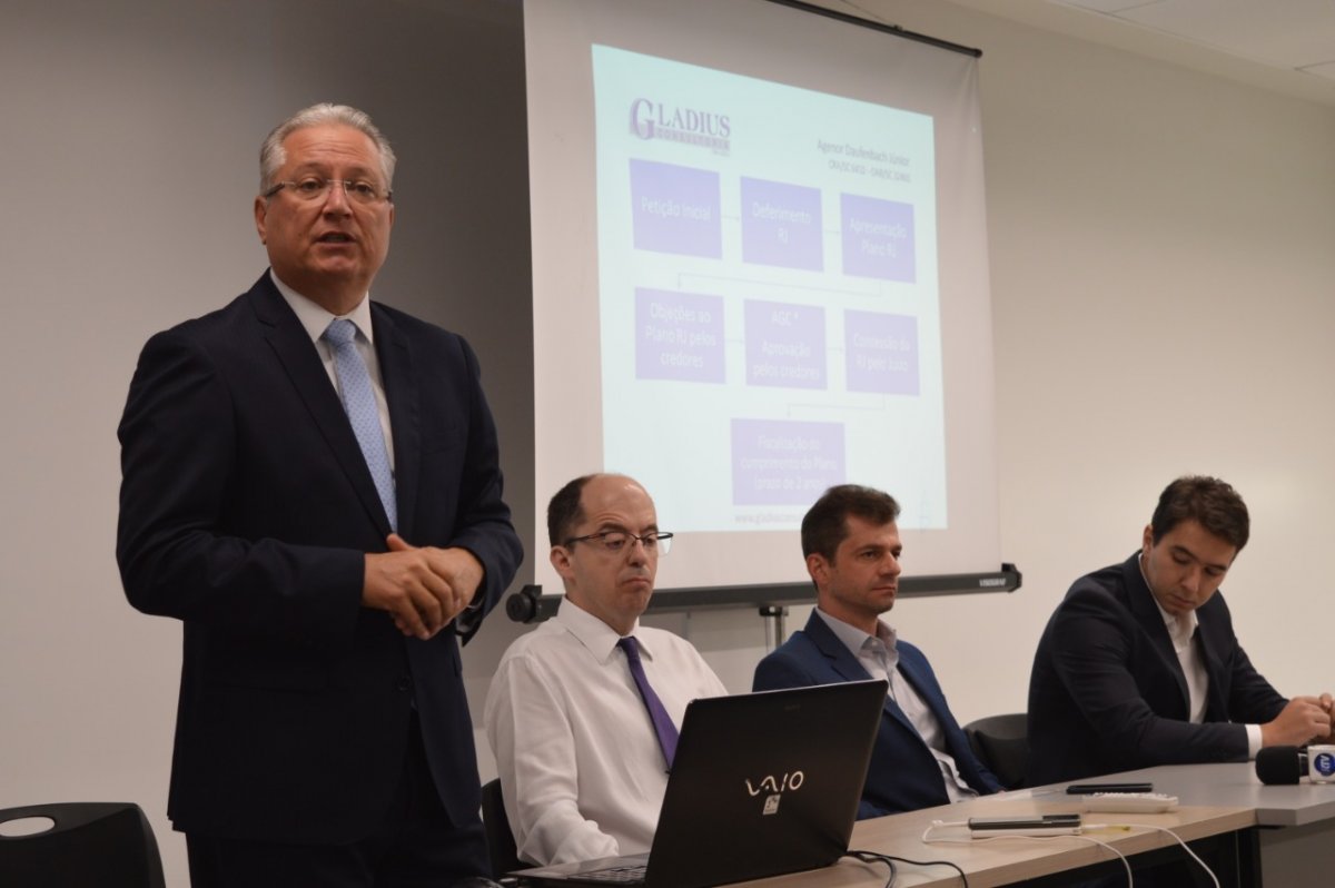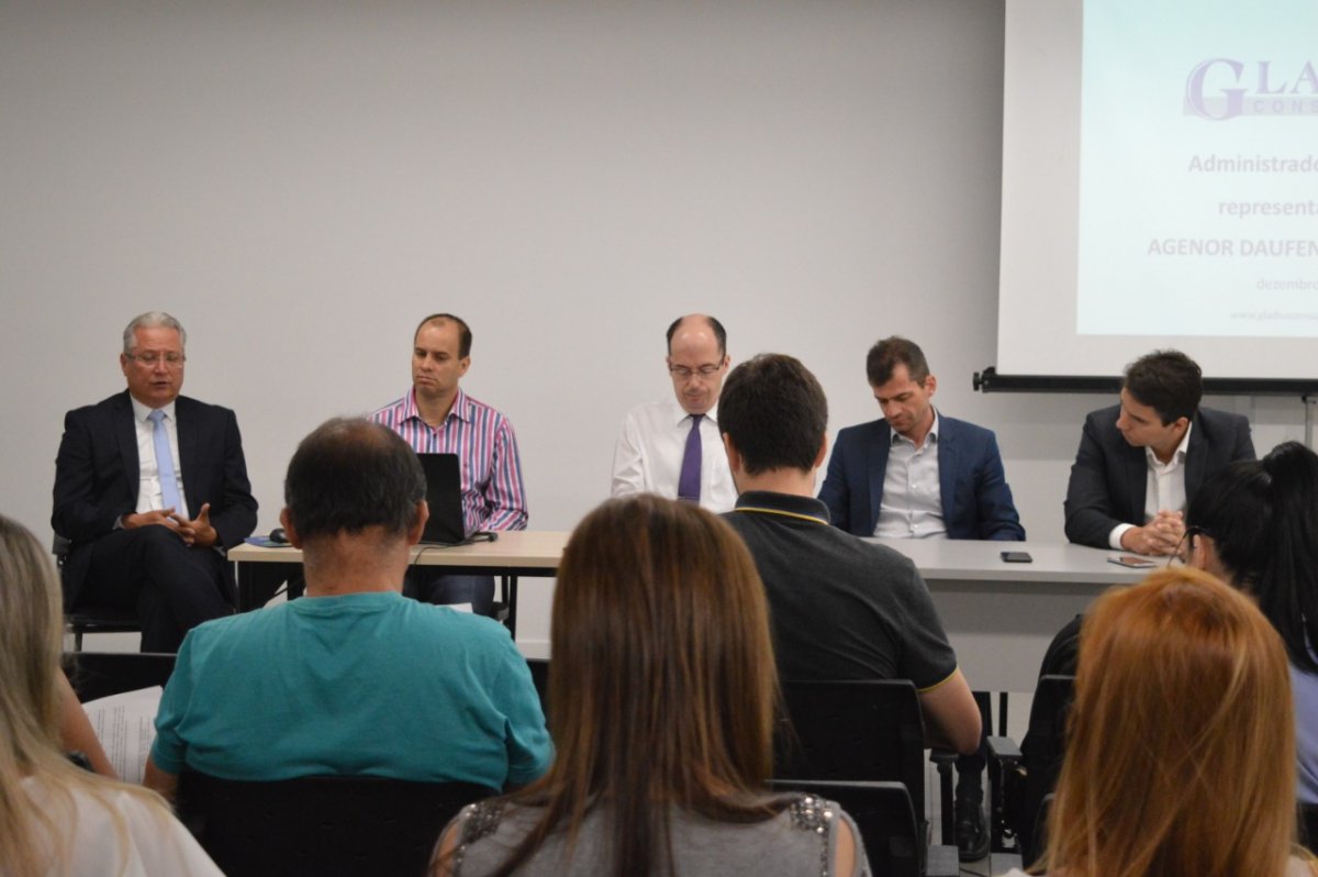 Sentaram à mesa para prestar esclarecimentos aos jornalistas os responsáveis por cada atribuição judicial do processo: o administrador judicial (nomeado pelo juiz) Agenor Daufenbach Júnior; da Gladius Consultoria, o gestor judicial (eleito em assembleia de credores), Zanoni Elias; o juiz Rafael Milanesi Spillere; o promotor Diógenes Viana Alves; e o advogado Lucas Reis de Farias.