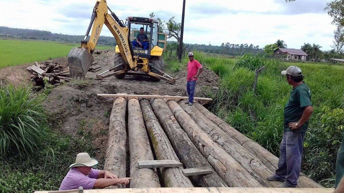 A equipe da Secretaria de Transportes, Obras e Serviços Urbanos de Nova Veneza trabalha intensamente na recuperação de estradas e pontes nas comunidades do interior.