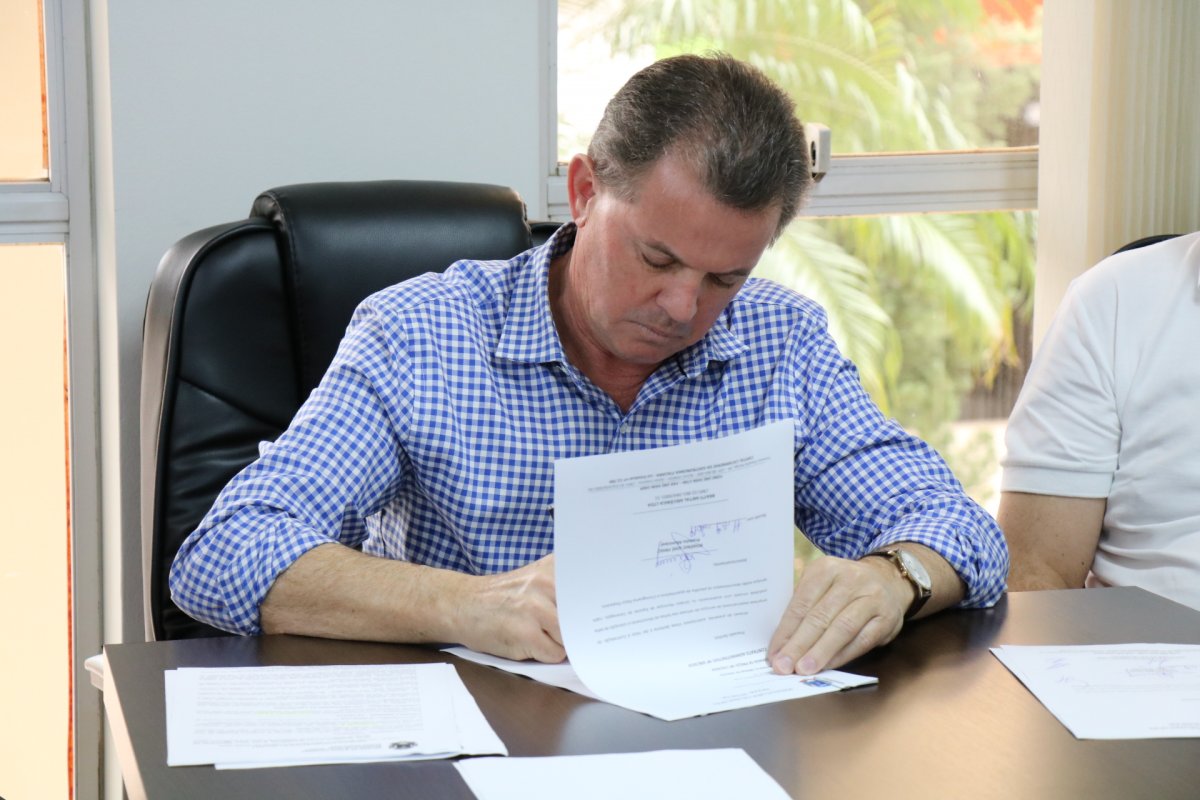 Em evento realizado na manhã desta quarta-feira, 11, na Prefeitura Municipal, o prefeito Rogério Frigo assinou as ordens de serviços que autorizam o início da construção das cabeceiras da ponte Pierin Malgaresi, da troca do telhado do ginásio de esportes do distrito de Caravaggio e a construção da praça no bairro Eliza.