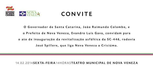 Governador estará em Nova Veneza na sexta-feira para inaugurar revitalização da SC-447