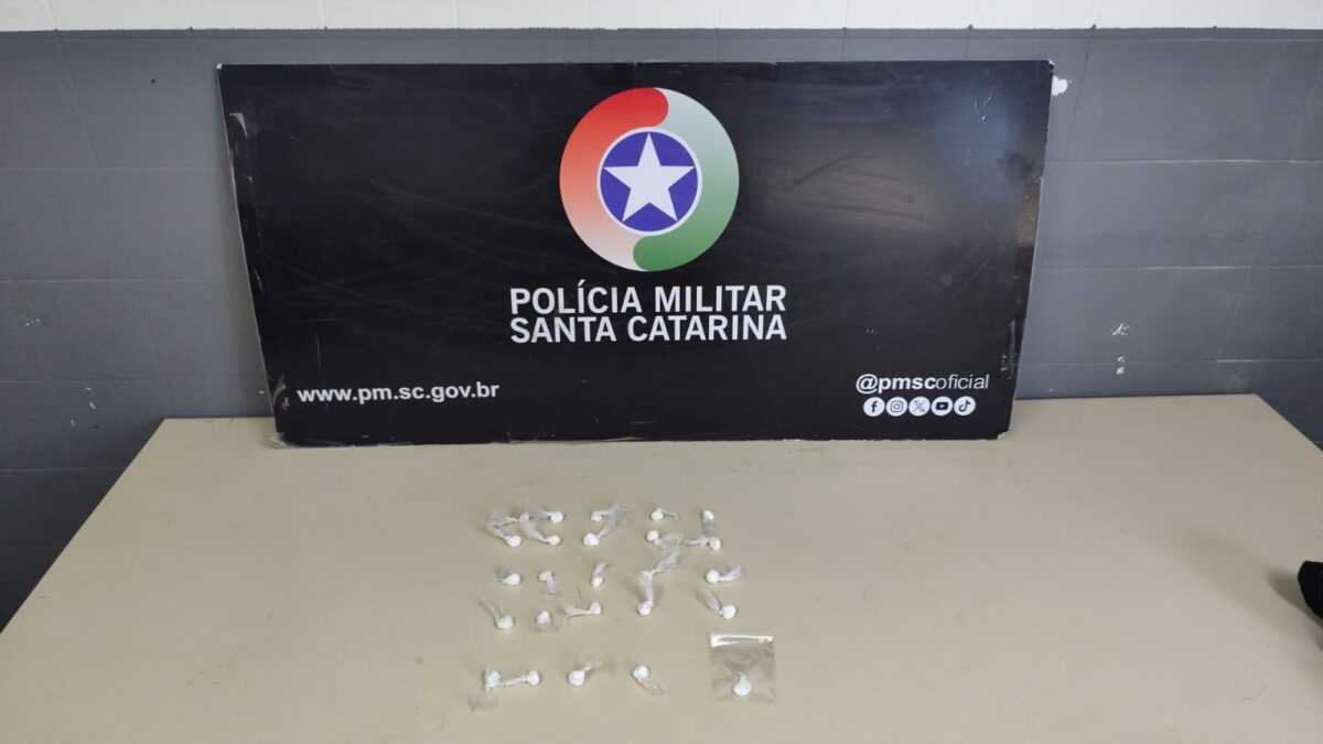Na sequência, os policiais localizaram a motocicleta em uma rua próxima e realizaram a abordagem. O condutor apresentou nervosismo durante a ação. Em revista, foram encontrados dois aparelhos celulares e, sob o banco do veículo, dentro de uma meia, aproximadamente 21 gramas de cocaína.