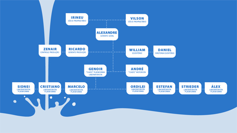 Por fim, vinham os laboratoristas, responsáveis por adicionar os produtos químicos ao leite. São eles: Cristiano Cecon, Daniel Strieder, Estefan Rodrigues Martins, Odirlei Polís, Sidnei Gaiardo, Marcelo Behling e Alex Junior Faguntes da Rosa.