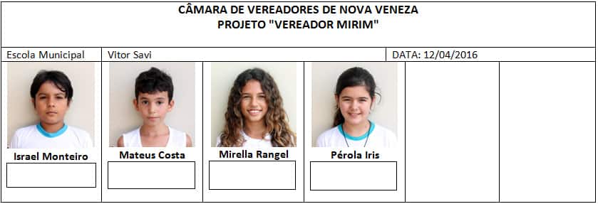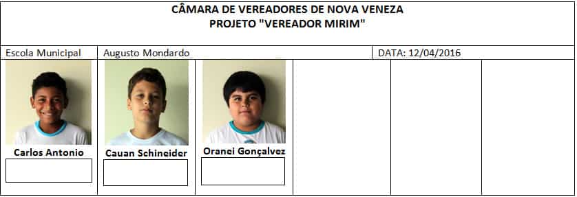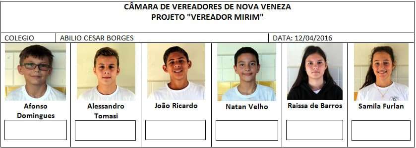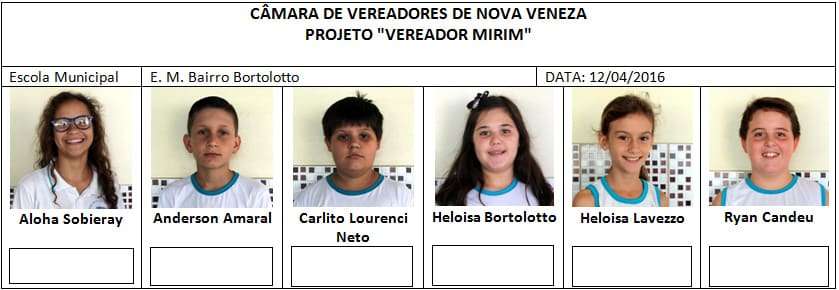 O presidente do Legislativo ressalta, a participação intensa dos pais dos alunos no projeto. “Todos estão bastante engajados. A movimentação em torno do Vereador Mirim é grande, e podemos perceber que as ideias de melhorias já estão surgindo entre os candidatos. Ideias muito positivas, por sinal, tanto para curto, quanto para longo prazo. Nossas crianças prometem fazer o poder público trabalhar ainda mais”, completa Biro-Biro.
