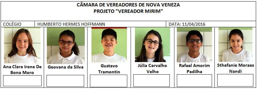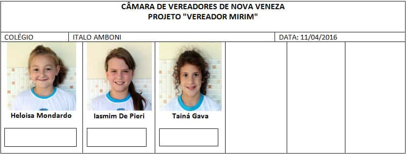 Entre candidatos e alunos que participarão votando, serão envolvidos no projeto Vereador Mirim de Nova Veneza, mais de 1,3 mil alunos da rede municipal e estadual de ensino. Durante esta segunda, 11, e terça-feira, 12, serão realizadas as eleições nas escolas, e dos 44 candidatos pré-selecionados, nove serão eleitos para ocupar uma cadeira disponível no Legislativo.