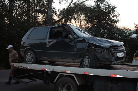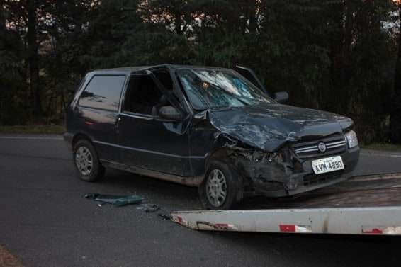 Por volta das 17 horas desta quarta-feira, 07, um Fiat Uno com placas de Curitiba, acabou colidindo de frente com um caminhão da Tramonto Alimentos.