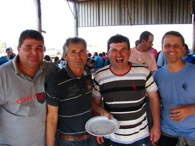 Depois de almoçar pato com polenta na casa de Bozello voltamos para a festa “errada”. Desta vez Rogério Frigo, vereadores Dalto Bortolotto e Vanderlei Spillere também foram na vizinhança. Pela primeira vez entrei numa festa que não era convidado mas como a vida para mim é fazer amigos, rimos bastante da situação. Teve piadinhas como: “aqui é a festa do 11” e “nesta tem mais gente do que de vocês”. Estava divertido.
