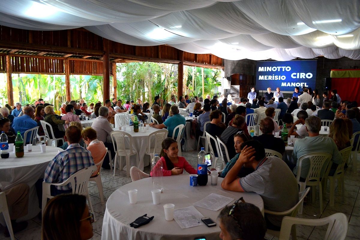 Era para ser apenas um encontro da família Minotto, mas a confraternização organizada pelo deputado estadual Rodrigo Minotto (PDT) neste sábado, 23, acabou reunindo mais de 350 pessoas. Entre elas o pré-candidato ao Governo do Estado, deputado Gelson Merísio (PSD) e o presidente estadual do PDT, pré-candidato e deputado federal, Manoel Dias.