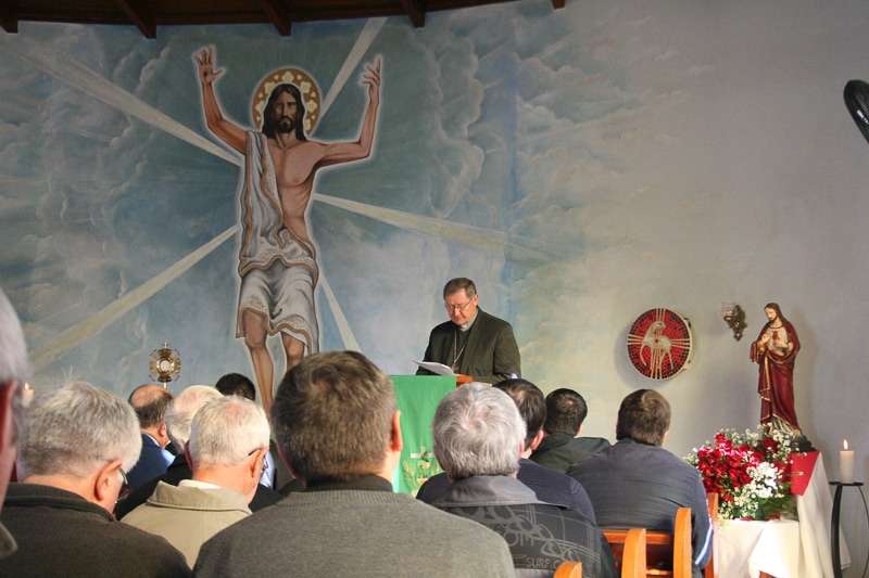 O bispo diocesano, Dom Jacinto Flach, recordou ensinamentos e advertências de Papa Francisco para uma autêntica vivência do sacerdócio ministerial. O momento celebrativo foi concluído com a bênção com o Santíssimo Sacramento, e depois, os padres, organizados dois a dois, seguiram a pé até o Santuário Nossa Senhora de Caravaggio, enquanto realizavam sua confissão. A chegada ao Santuário foi marcada pela procissão por entre a Porta Santa, seguida pela celebração da Santa Missa.