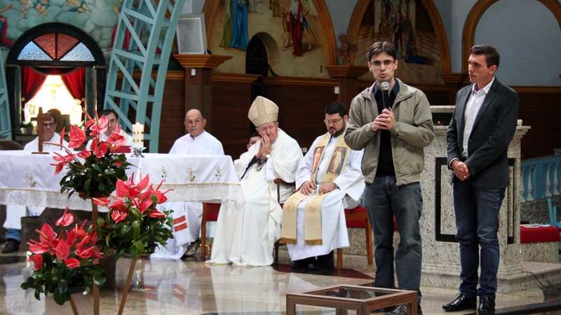 Ao final da missa, os diáconos Daniel Zilli Da Rolt e Jonas Emerin Velho reforçaram seu convite aos padres para suas ordenações presbiterais. Daniel será ordenado padre no dia 02 de julho, às 15h, no Santuário em Morro Bonito, Içara; e Jonas, no dia 08 de outubro, às 15h, em Santa Rosa do Sul.