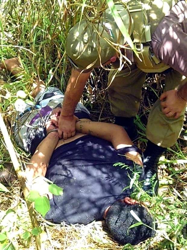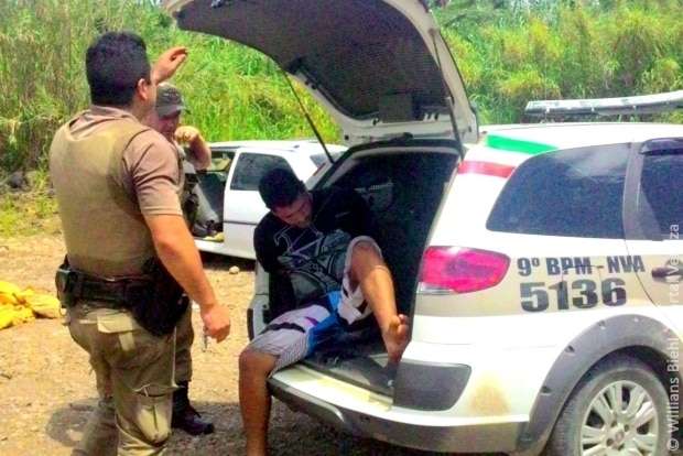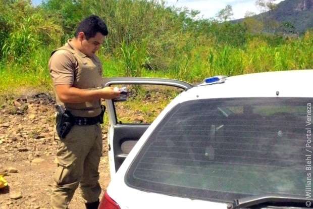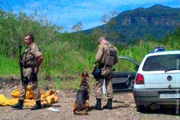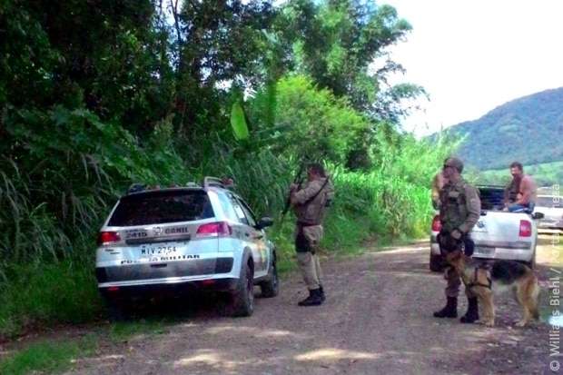 Em seguida chegou uma guarnição da Polícia Militar de Nova Veneza composta pelo cabo Campos e soldado Moacir. Com a chegada dos policiais os dois homens se embrenharam no matagal que fica as margens do Rio São Bento. Para fechar o cerco aos suspeitos foram solicitados de Criciúma apoio do Pelotão Tático e Canil, ao todo, 15 policiais participaram da operação.