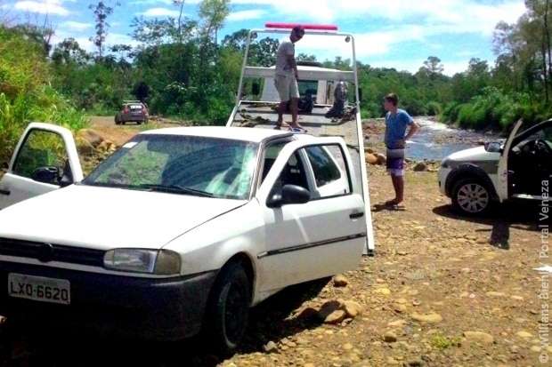 O morador então iniciou perseguição em alta velocidade por cerca de 8 km até as proximidades da Barragem do Rio São Bento. Lá cometeram o erro de entrar em uma rua sem saída, construída para retirada de seixo da Prefeitura de Nova Veneza. O morador então colocou pedras na saída da rua para evitar que os homens passassem com o carro e fugissem novamente. Acuados, os homens então dispararam ao menos oito tiros de revólver na direção do morador.