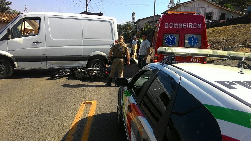 Por volta das 9h20min desta quinta-feira, 20, o condutor, 36, de uma caminhonete Sprinter, placas de Torres, ao sair do “Brasília”, para entrar na rua Antonio Remor no Centro de Nova Veneza, acabou cortando a frente do condutor de 36 anos, de uma Honda NXR 150 Bros de Nova Veneza.