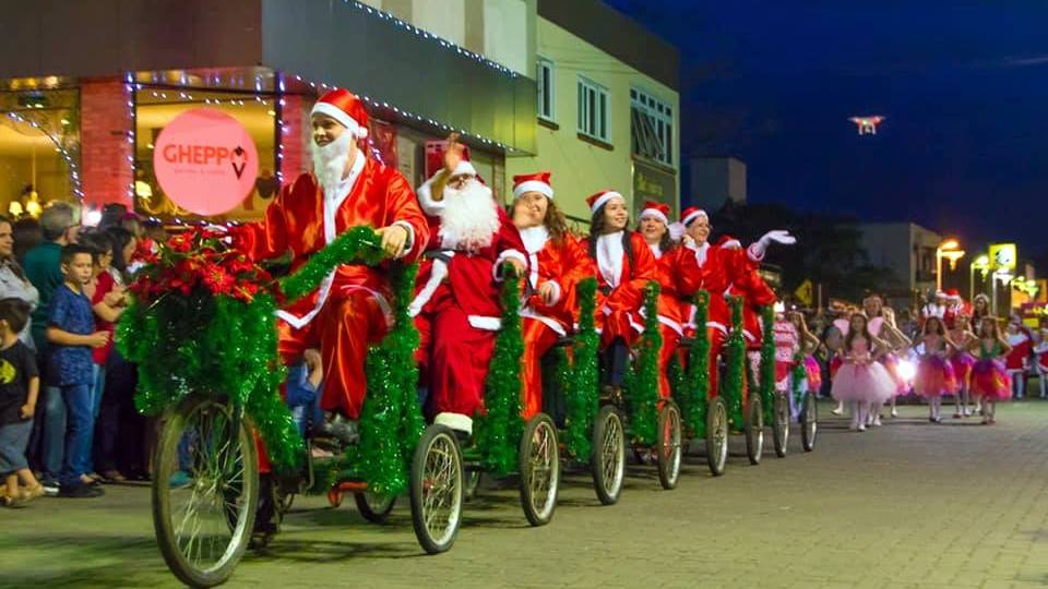 O ponto alto do evento será o desfile natalino no dia 09 de dezembro, às 20h na Praça Humberto Bortoluzzi.