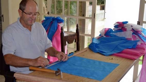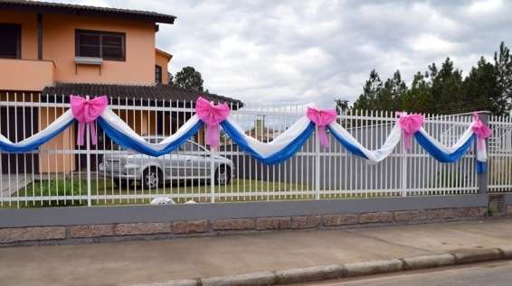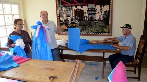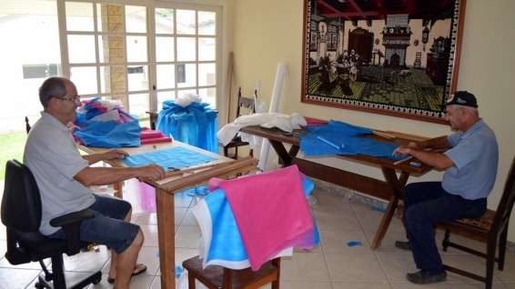 Casas, comércio e postes enfeitados com as bandeiras nas cores branca, azul e rosa, simbolizando as cores do manto de Nossa Senhora. No início de maio começaram a ser confeccionadas as bandeiras, totalizando cerca de sete mil. Os responsáveis são da Pastoral Social e equipe, entre eles Antônio Nascimento, Adelina Nascimento e Antônio Gava. “Com sua infraestrutura e prestação de serviço é o melhor atrativo pronto do turismo religioso, recebendo anualmente milhares de pessoas”, explica Nascimento.