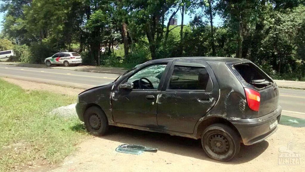 Por volta das 14h40min desta quinta-feira, 22, o condutor de um Fiat Palio placas de Anitápolis, logo após subir o Morro do Caravaggio, no limite entre os municípios de Nova Veneza e Criciúma, perdeu o controle da direção e acabou capotando o veículo.