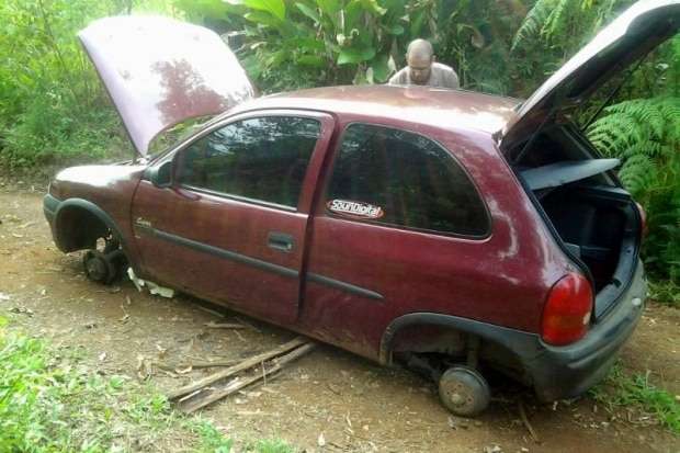 Após denúncia ao 190 na última quinta-feira, 09, por volta das 12 horas, a guarnição da Polícia Militar composta pelos Sd. Moacir e Sd. Figueira se deslocou até um matagal no Distrito de Caravaggio em Nova Veneza, onde segundo informações havia pelo menos dois homens desmontando um veículo. Ao chegar ao local foi encontrado abandonado já sem as rodas e outros itens, um GM Corsa com placas de Criciúma com registro de furto.