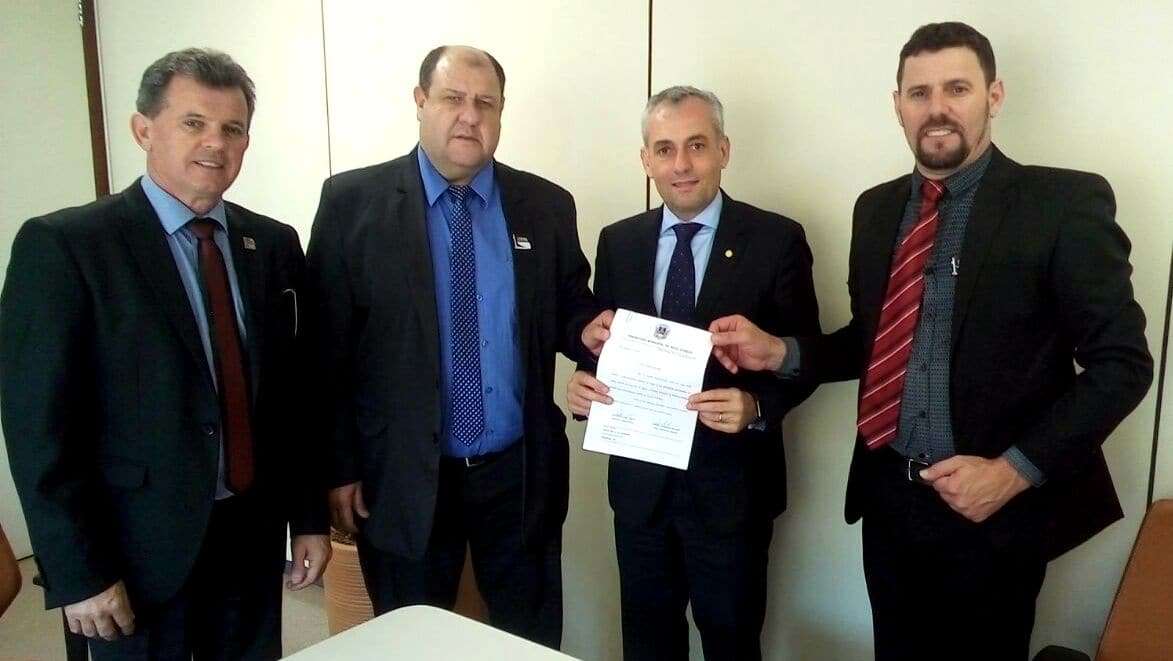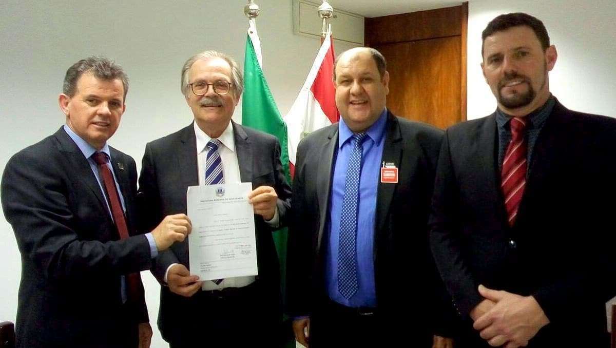 Prefeito de Nova Veneza, Rogério Frigo, o vice Sérgio Alberto Spilere e o presidente da Câmara de Vereadores, Eloir Minatto, estiveram em Brasília participando de audiências para reivindicar emendas parlamentares.