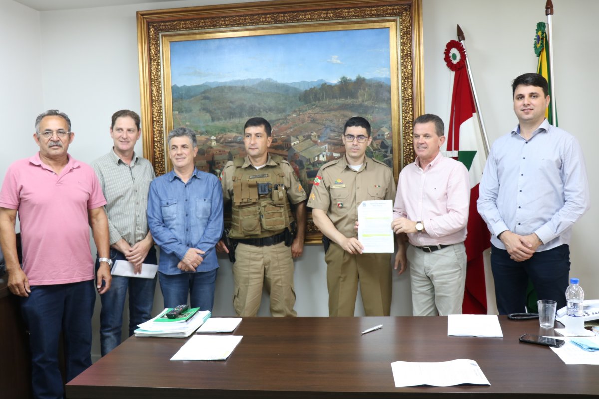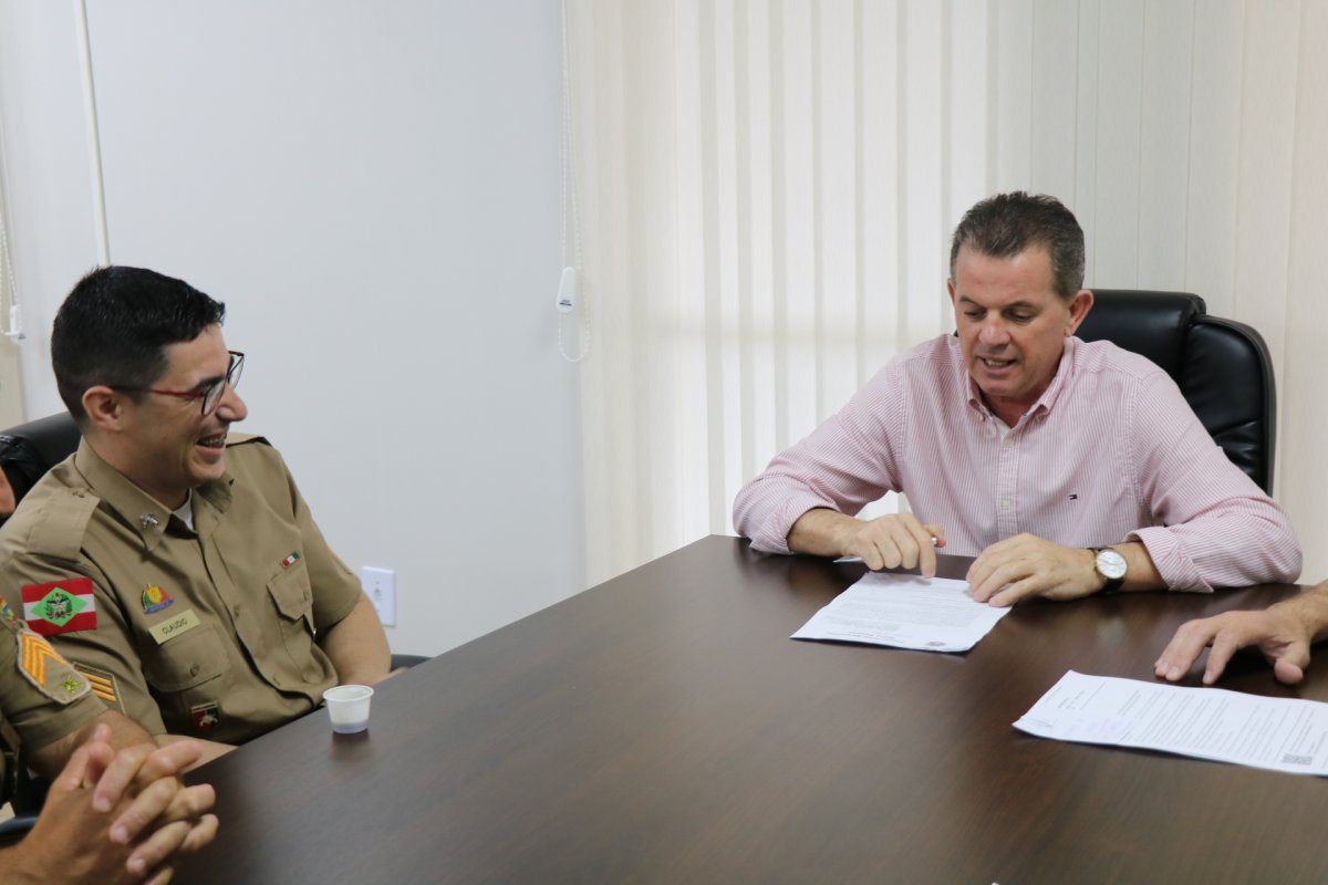Na manhã desta sexta-feira, 4, o prefeito, Rogério Frigo e o comandante do destacamento da Polícia Militar em Nova Veneza , sargento Andrey Cláudio Teixeira, assinaram o convênio com repasse equivalente a 2,5 mil litros de combustível, por mês, e também o valor de R$ 17 mil para investimento para a reforma do destacamento.