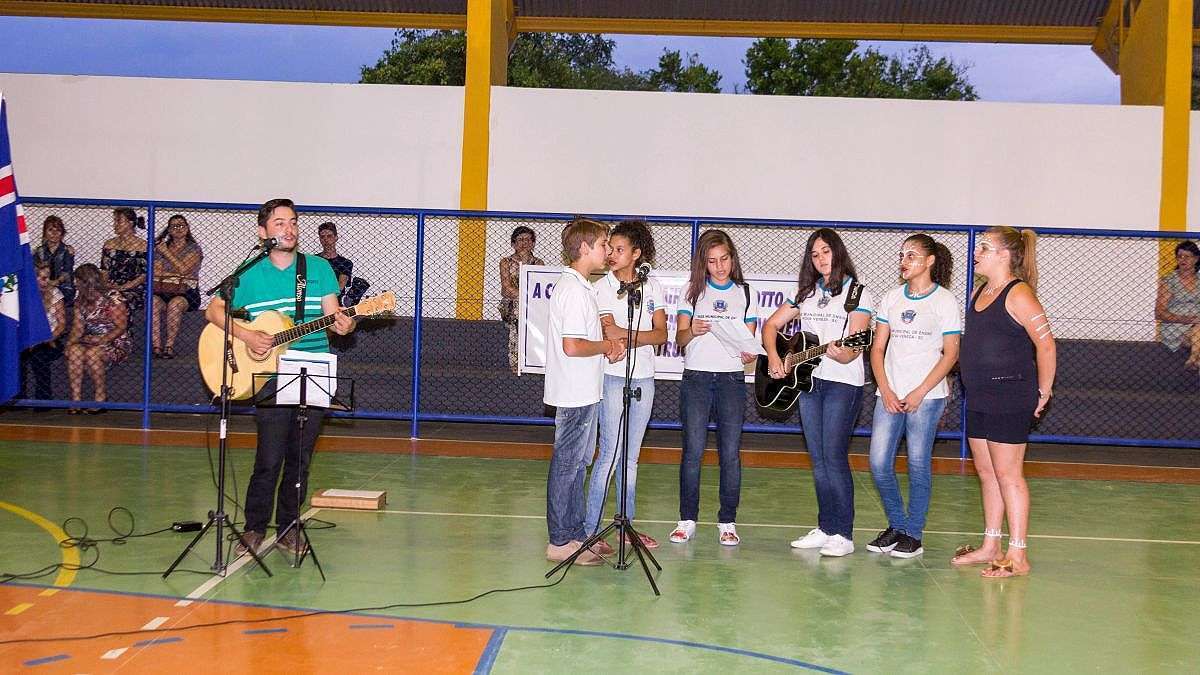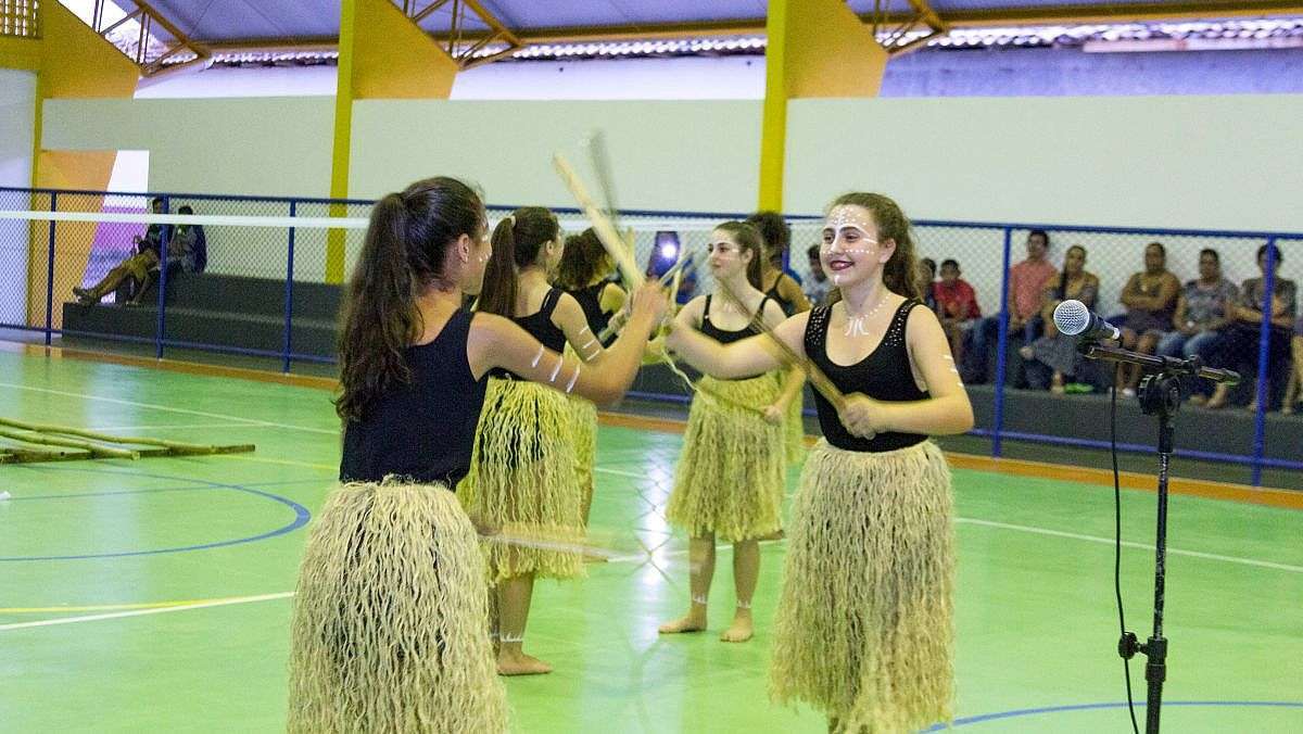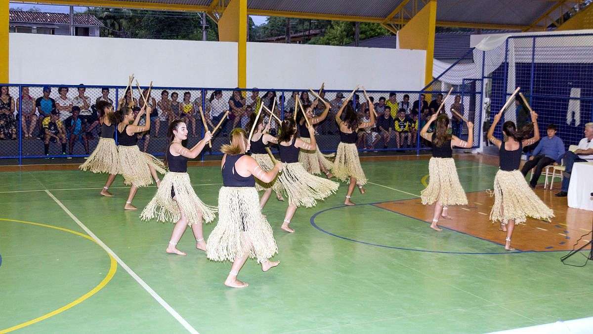 Durante a solenidade, os alunos do projeto “Mais Novo Educação” deram um show com apresentações de dança folclóricas brasileiras de Maculelê e Bambu e canto.