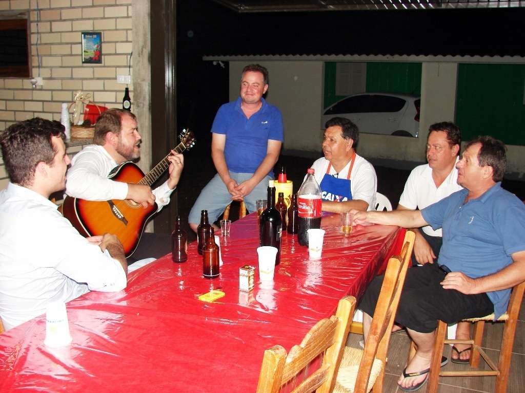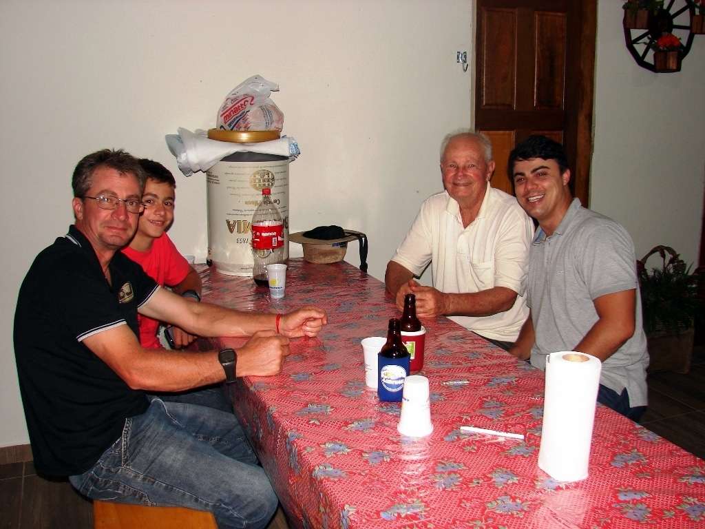 A família Mario Ugioni reuniu parte da equipe da Caixa Federal para um jantar no quiosque da família em São Francisco. O cardápio foi preparo pelo Itamar, gerente da agência. Eu estive presente e conversei com o ex-vereador Mario Ugioni, pai dos irmãos Dudu e Cadi, que me convidaram.