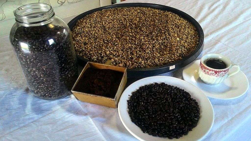 Depois da colheita eles vão para secagem natural exposta ao sol entorno de quarenta dias. Passando por outra seleção através de uma peneira manual.