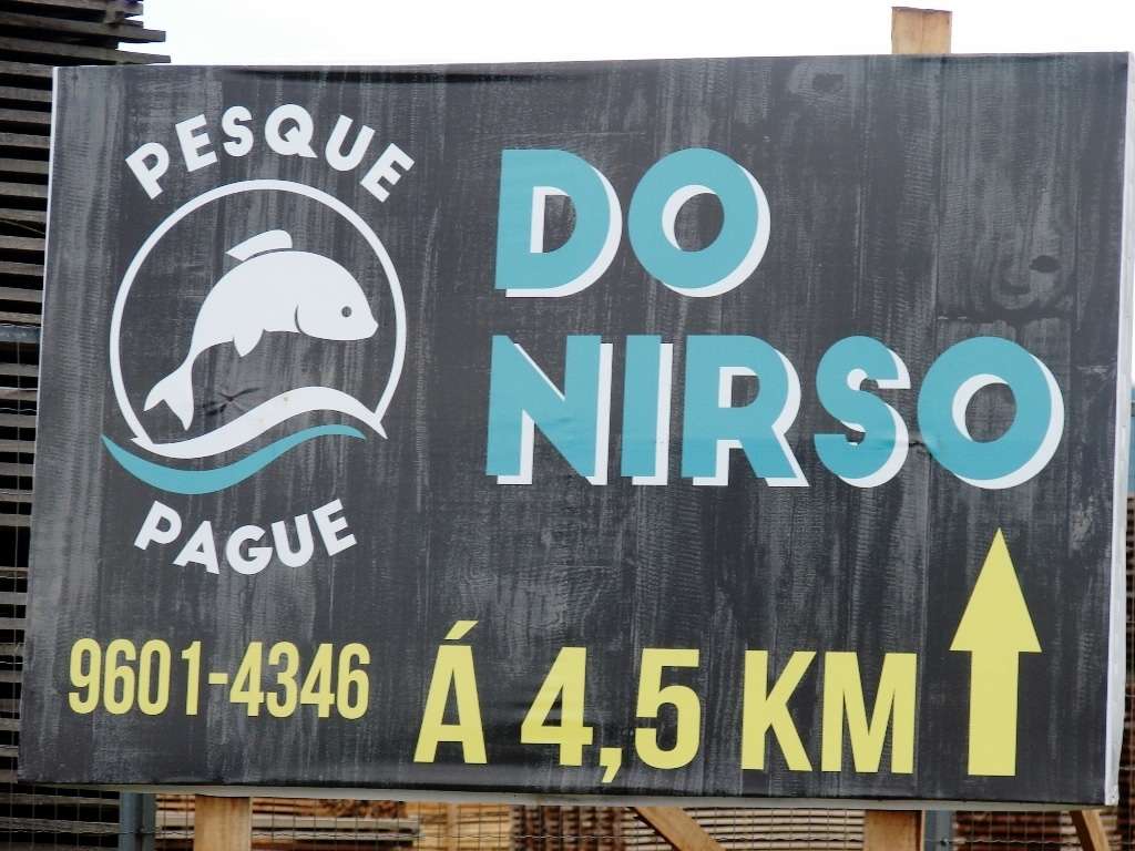Algumas placas comerciais chamam a atenção por sua criatividade e originalidade. Há alguns exemplos por aqui e na região. O pesque-pague do “Nirso” fica em São Bonifácio. Certamente o nome do proprietário é Nilson mas passou a ser mais conhecido por este apelido. Há um detalhe: diante de horas se usa crase mas o acento neste caso está incorreto. Crase ( ` ) , acento agudo ( ´ ).