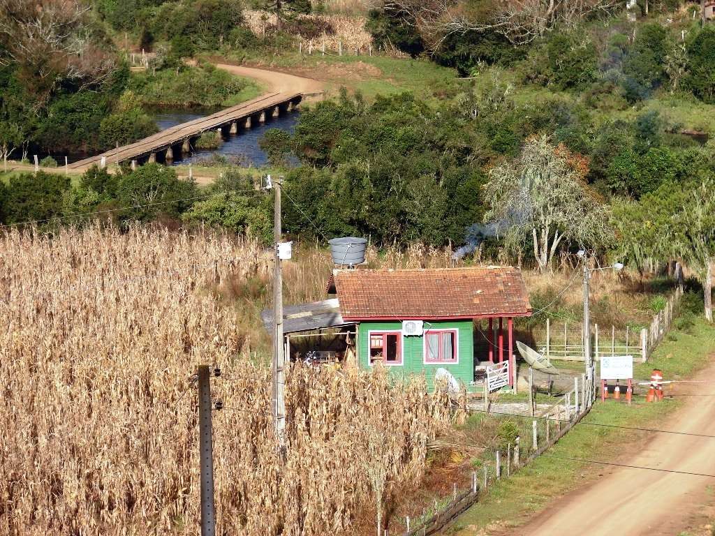Posto fiscal da Várzea (RS). Ao fundo o rio das contas que é a divisa dos dois estados, Rio Grande do Sul e Santa Catarina. Ali funciona às vezes o jeitinho “serrano” para trazer um queijinho.