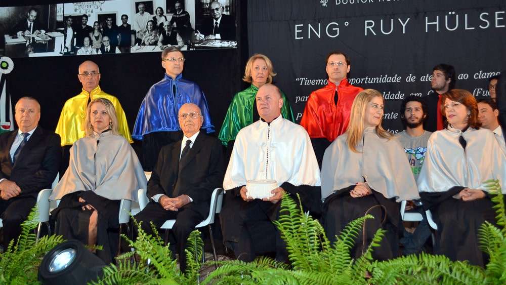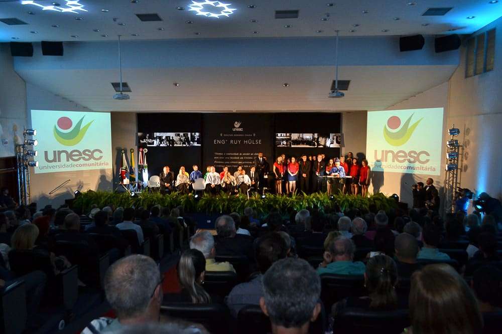 Emoção é a palavra que melhor define este 14 de março de 2016 na Universidade. Na noite desta segunda-feira, a Unesc (Universidade do Extremo Sul Catarinense), em Criciúma, entregou o título de Doutor Honoris Causa ao engenheiro Ruy Hülse, criador da Fucri (Fundação Educacional de Criciúma – em 22 de junho de 1968) que deu origem, em 17 de junho de 1997, à Unesc. Lideranças de diversas áreas da região, familiares e amigos do homenageado e pessoas da comunidade acompanharam a solenidade da concessão desta que é a honraria máxima que uma Instituição de Ensino Superior do Brasil pode conceder.