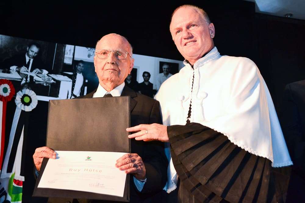 (Fotos: Mayra Lima)Engenheiro Ruy Hülse recebeu a honraria máxima da Universidade