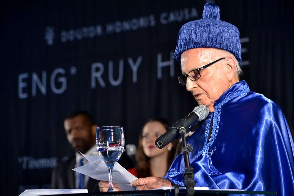 Ruy Hülse, engenheiro de Minas e Eletrotécnica é diretor executivo da Satc e presidente de honra do Siecesc (Sindicato da Indústria de Extração de Carvão do Estado de Santa Catarina). Em seu discurso, o homenageado agradeceu e se disse honrado em ter sido escolhido para receber o título e figurar em um seleto rol de pessoas que recebeu o Honoris Causa da Unesc. “Receber essa honrosa homenagem me faz lembrar de fatos marcantes da minha história. Estar aqui hoje me deixa profundamente grato e envaidecido. Estive no passado olhando para o futuro, e hoje, no presente, estou vendo uma Universidade que está formando as gerações futuras e sendo responsável pelo desenvolvimento socioeconômico da região Sul do Estado”, afirmou Hülse.