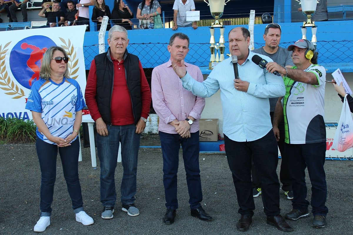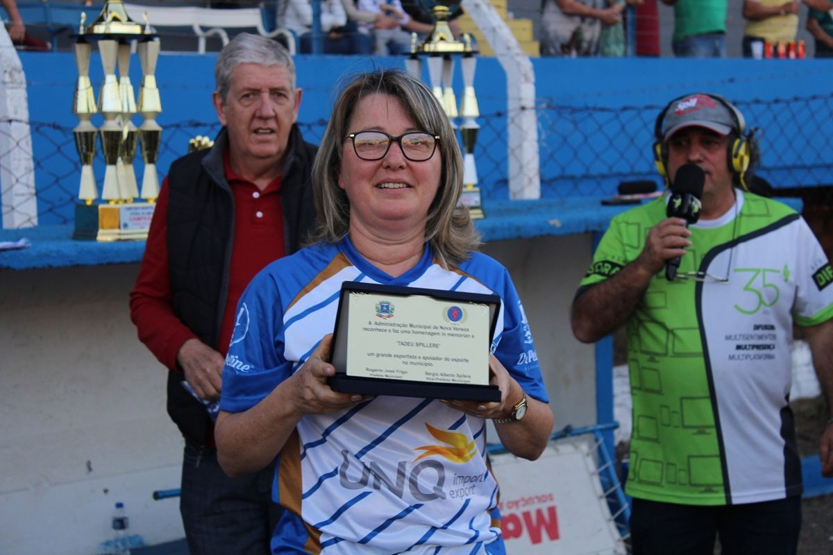 O prefeito de Nova Veneza, Rogério Frigo, fez um cumprimento especial a todos os jogadores que fizeram um grande espetáculo e a torcida também. “Vocês deram um exemplo de maturidade e saber respeitar o seu adversário. É claro que temos que ter um vencedor, mas foram duas equipes com grande potencial para vencer. E é assim que se faz futebol, com grandeza, respeito e educação. Parabenizo também as demais que disputaram a competição. E ainda ao Departamento Muncipal de Esportes que se envolve nesse trabalho. E hoje, uma homenagem justa ao Tadeu que participou, ajudou e fez muitas coisas boas pelo nosso município. Por isso, em nome da nossa administração queremos deixar o nosso reconhecimento e agradecimento a todos vocês”.